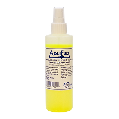 Aquiflux. It's the tried-and-true jewelers' hard soldering flux. Yellow-green and self-pickling, it is the best in water-based fluxes. Well-mixed to eliminate suspension.