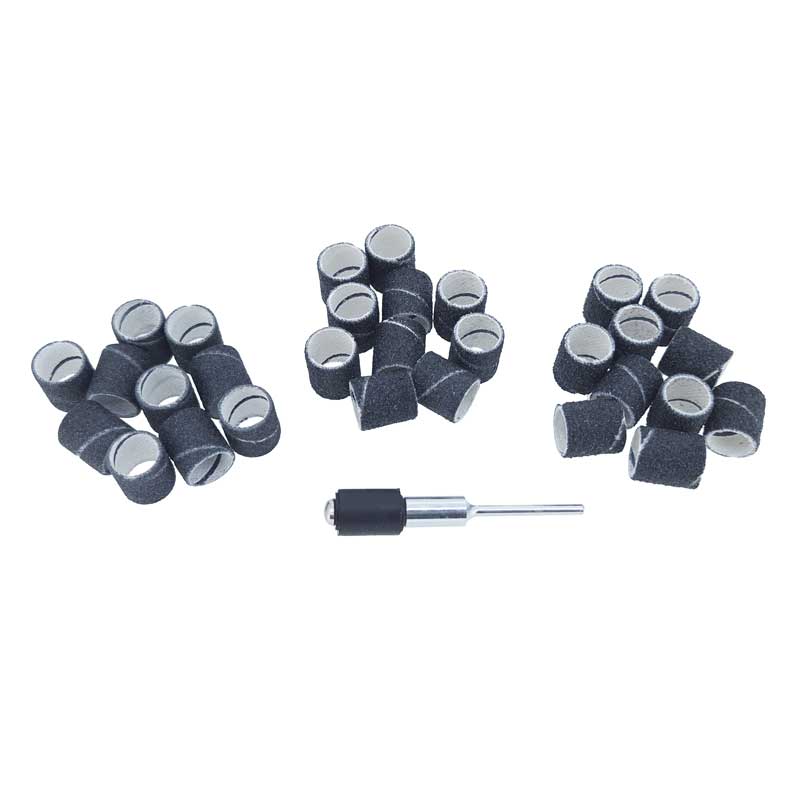 Glue bonded, silicon carbide for fast cutting. Far outlasts lapped bands. All are 1/2" long. Kit includes all 3 Grits and 1 Mandrel Size: Medium 3/8"