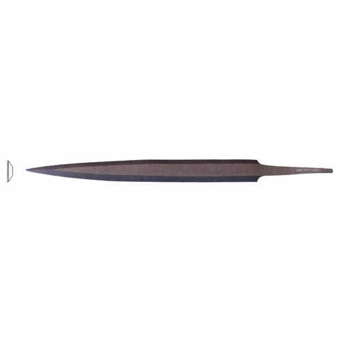 Tapered in width and thickness, coming to a point. Only flat side is cut, providing safe edge and top. Double cut. Length: 6" Cut: 3