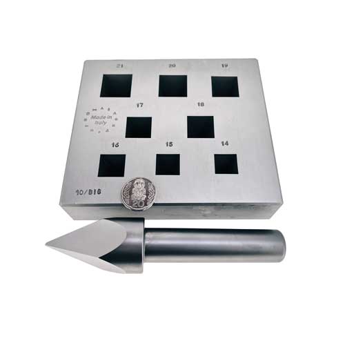 Bezel blocks with punches made from high grade hardened steel. Standard blocks are 17° These blocks are made in Italy. Measurements: 14mm to 21mm