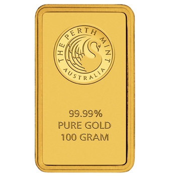 Gold bullion minted bars portray a struck version of The Perth Mint logo and carry an inscription of their weight and purity.