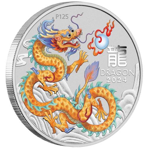 Fine Silver Coin 1/2oz Coloured Golden Dragon 2024