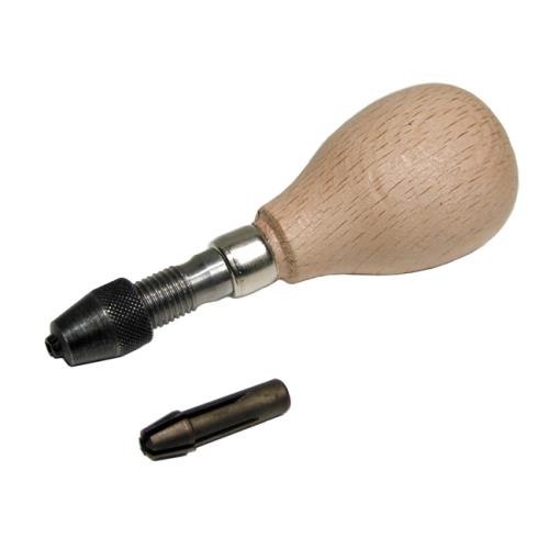Rounded wood handle with chucks that open from 0 to .129" (0 to 3.3 mm). Holds a variety of tools. Ideal for beading and millgrain tools. Overall length 3" (76 mm).