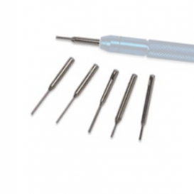 Three long pins: .70 .80 and .90mm and three short pins: .70 .80 and .90mm diameter. Spare pins only. Tool not included.