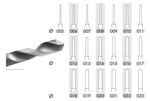 Tool steel cutter twist drill for machining soft precious metals and alloys. Stepped shank to allow for use in quick change handpieces with a 2.3mm collet size Diameter: 1.0mm Shaft diameter: 2.3mm