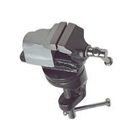 Jaws are just 1.25 inch wide. Revolves for convenient positioning. Cast cast iron with heavy enamel coating. Clamps onto bench.