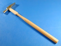 Small riveting hammer, with one end flat and the other chisel-shaped for spreading rivet heads. Forged head is mounted on hardwood handle.
